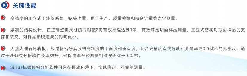 在有些應(yīng)用中,根據(jù)樣品的形狀、裝夾方法、或者模擬樣品使用狀態(tài)下測(cè)量,正立式干涉儀結(jié)構(gòu)相比臥式和倒立式更有優(yōu)勢(shì)。例如半球形球罩面形和曲率半徑的測(cè)量,正立式結(jié)構(gòu)能夠?qū)崿F(xiàn)盤上測(cè)量以及下盤后的無夾持應(yīng)力測(cè)量,而臥式結(jié)構(gòu)無法夾持半球,倒立式結(jié)構(gòu)測(cè)量盤上時(shí)需要支撐樣品和磨盤的重力,易造成樣品變形。
