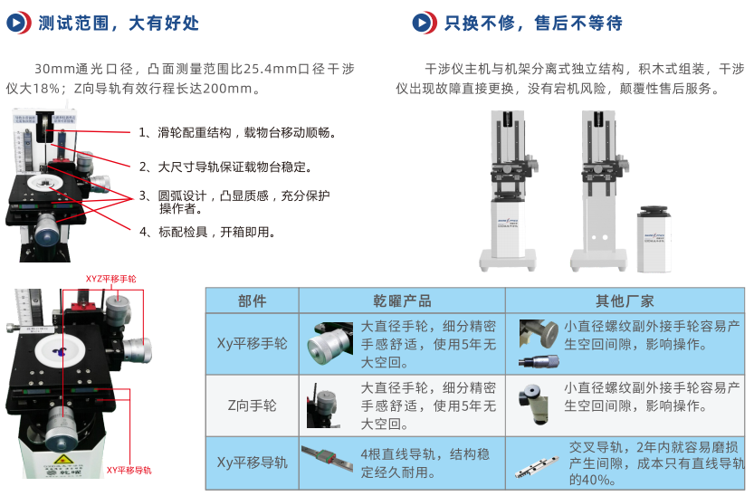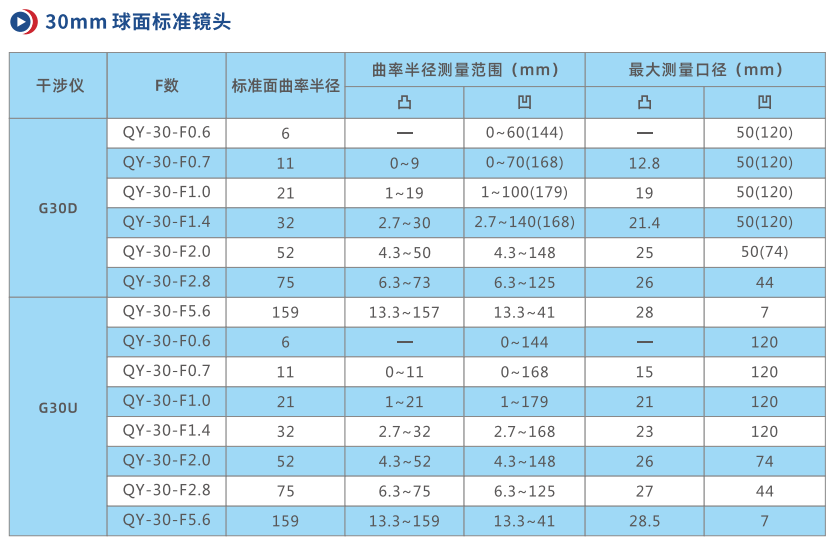 標(biāo)準(zhǔn)鏡頭有F0.6,F(xiàn)0.7,F(xiàn)1.0,F(xiàn)1.4,F(xiàn)2.0,F(xiàn)2.8,F(xiàn)5.6,可定制其他F數(shù)的鏡頭,也可選配平面標(biāo)準(zhǔn)鏡及相關(guān)治具測量平面鏡。