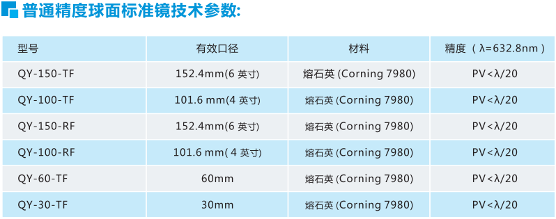 乾曜光學(xué)提供普通精度的平面標(biāo)準(zhǔn)鏡和超精密平面標(biāo)準(zhǔn)鏡,均包含平面透射標(biāo)準(zhǔn)鏡和平面反射標(biāo)準(zhǔn)鏡。 有效口徑有150mm(6英寸),100mm(4英寸), 60mm,30mm,150mm和100mm口徑鏡頭與Zygo 通用,60mm和30mm口徑鏡頭與富士通用。