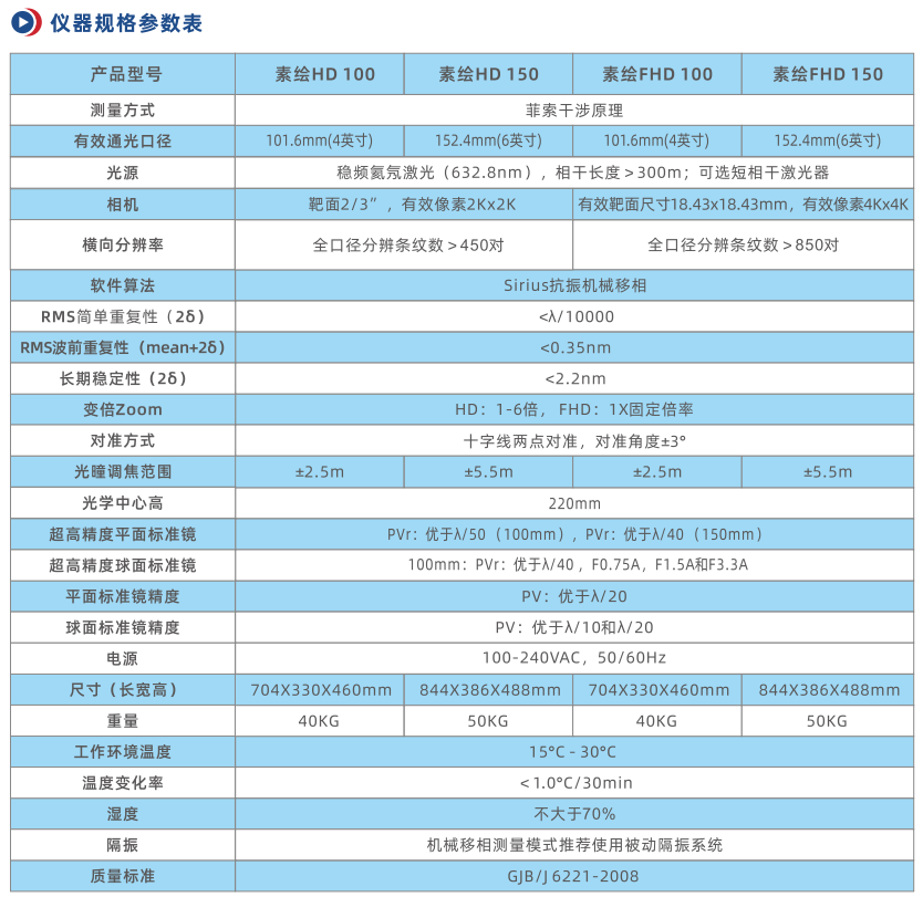 乾曜光學(xué)“素繪”系列激光干涉儀命名源于《論語》中“繪事后素”,從本質(zhì)上追求高品質(zhì)。“素繪"系列具有達(dá)到衍射極限的光學(xué)設(shè)計(jì)、高功率穩(wěn)頻氦氖激光器、400萬或1160萬像素的相機(jī)和使用P1壓電陶瓷的超穩(wěn)定移相器,通過Sirius抗振移相解析軟件采集條紋后計(jì)算分析,從而實(shí)現(xiàn)高分辨率的測(cè)量,展示樣品表面的中頻特征,達(dá)到國(guó)際領(lǐng)先水平的光學(xué)分辨率和測(cè)量重復(fù)性。"素繪"系列有HD和FHD兩種分辨率,光源從632.8nm擴(kuò)展到紫外266nm到近紅外1550nm,結(jié)構(gòu)形式可分為正立式、倒立式、大口徑臥式和大口徑立式。